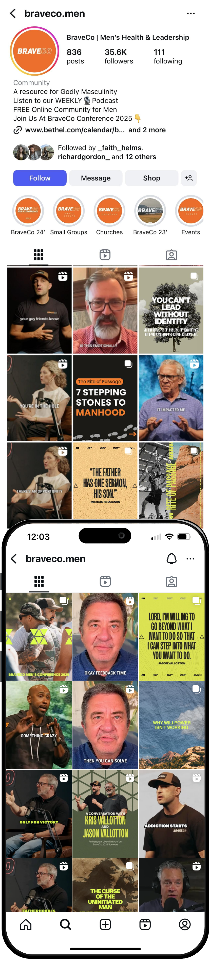 To equip men to walk in sexual integrity, emotional wholeness, and spiritual strength. Braveco offers a direct, no-nonsense discipleship program to equip church leaders with the tools they need to create a community of resilient, purposeful men. The goal is to create healthy men, who create healthy families, who build healthy communities in order to heal the world.